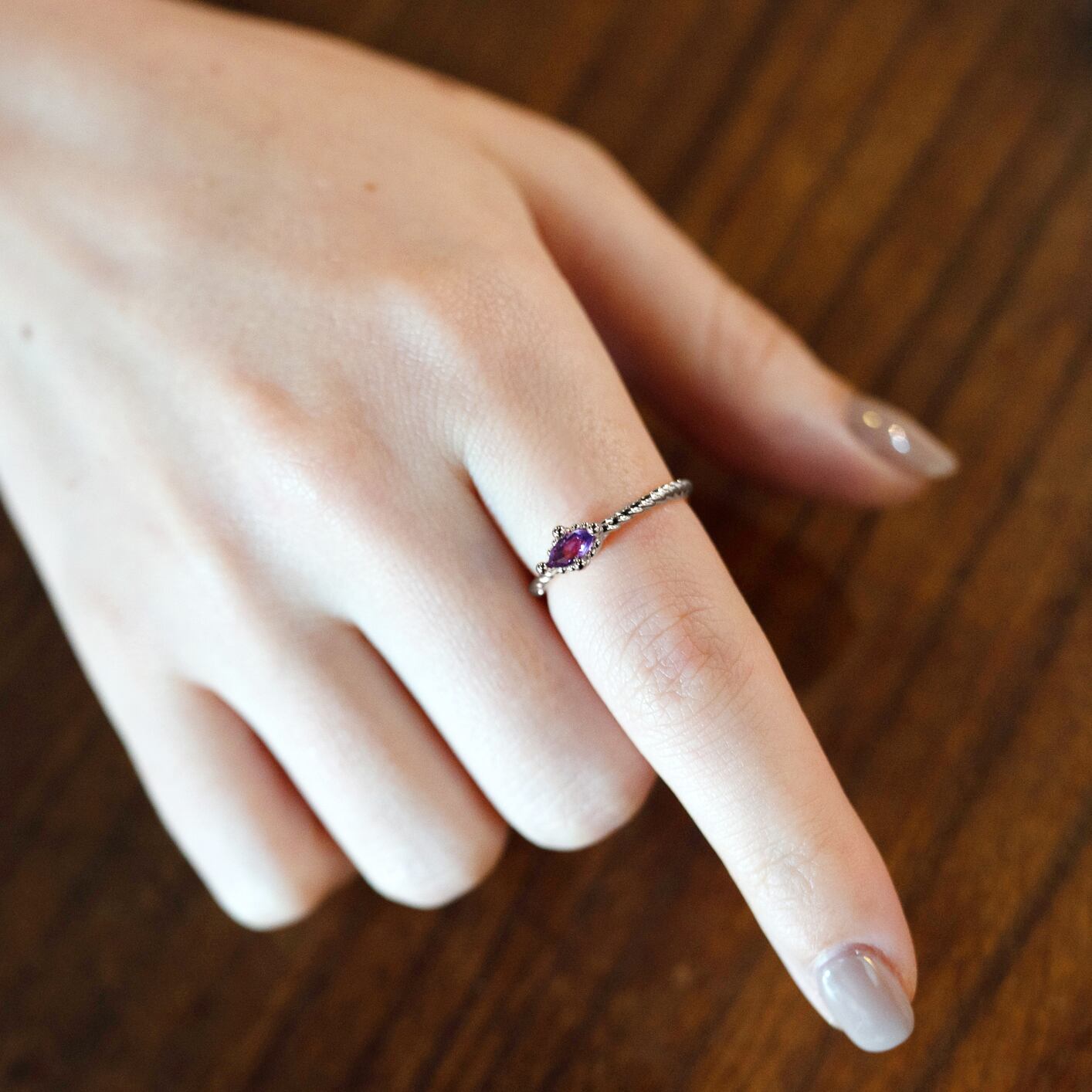 キラリと光る天然石のリングをデイリーに楽しみたいときや、お手持ちのリングと共に重ね付けをしたいときにぴったりのリングです。