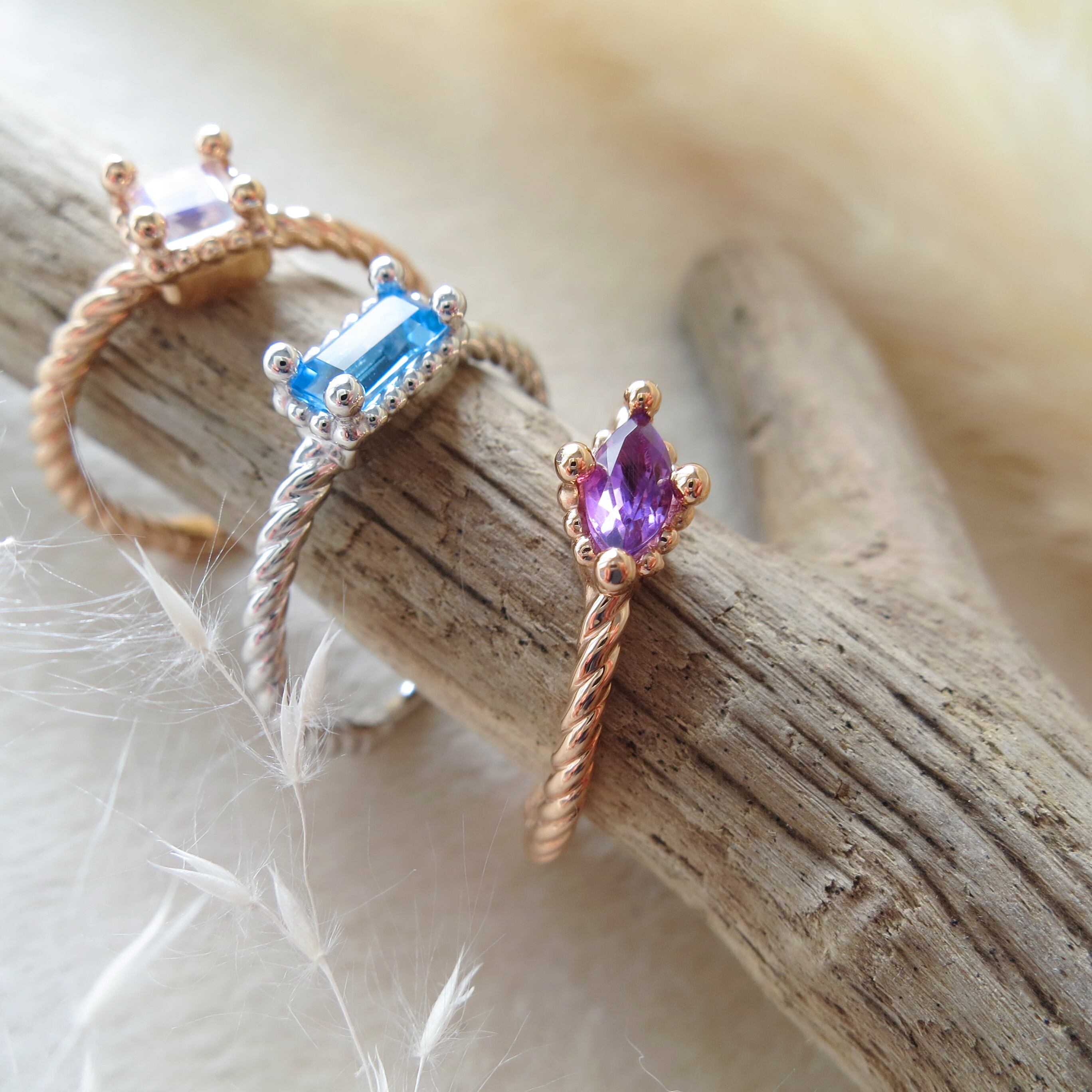 華奢なデザインと快適な着けごこちの天然石リング