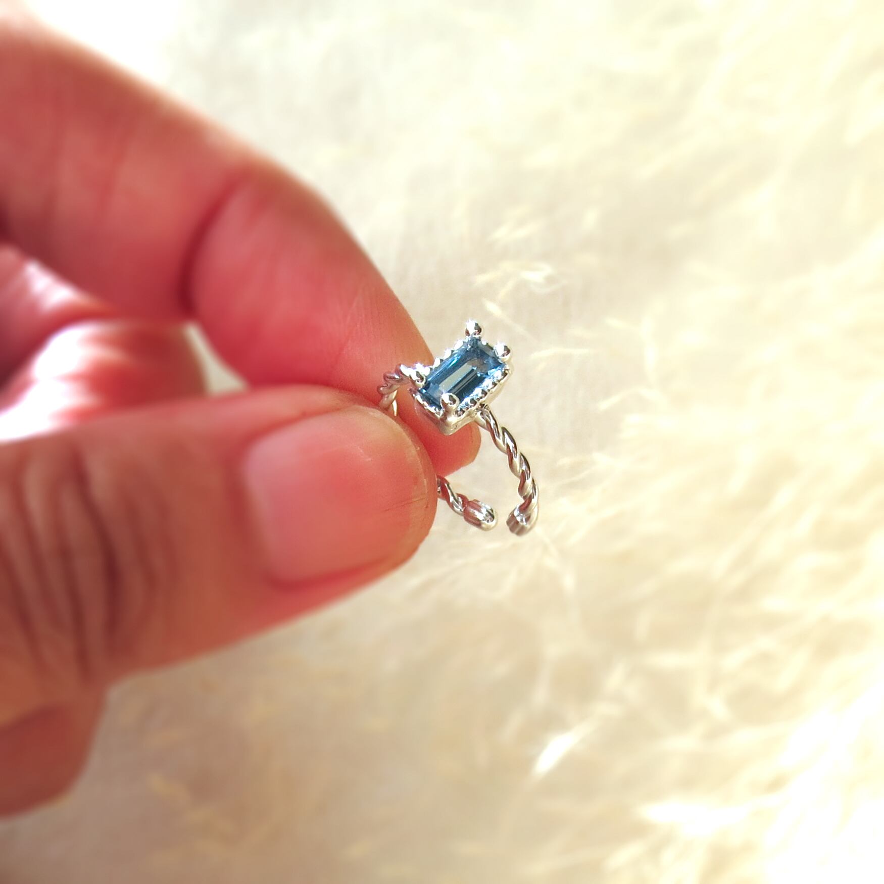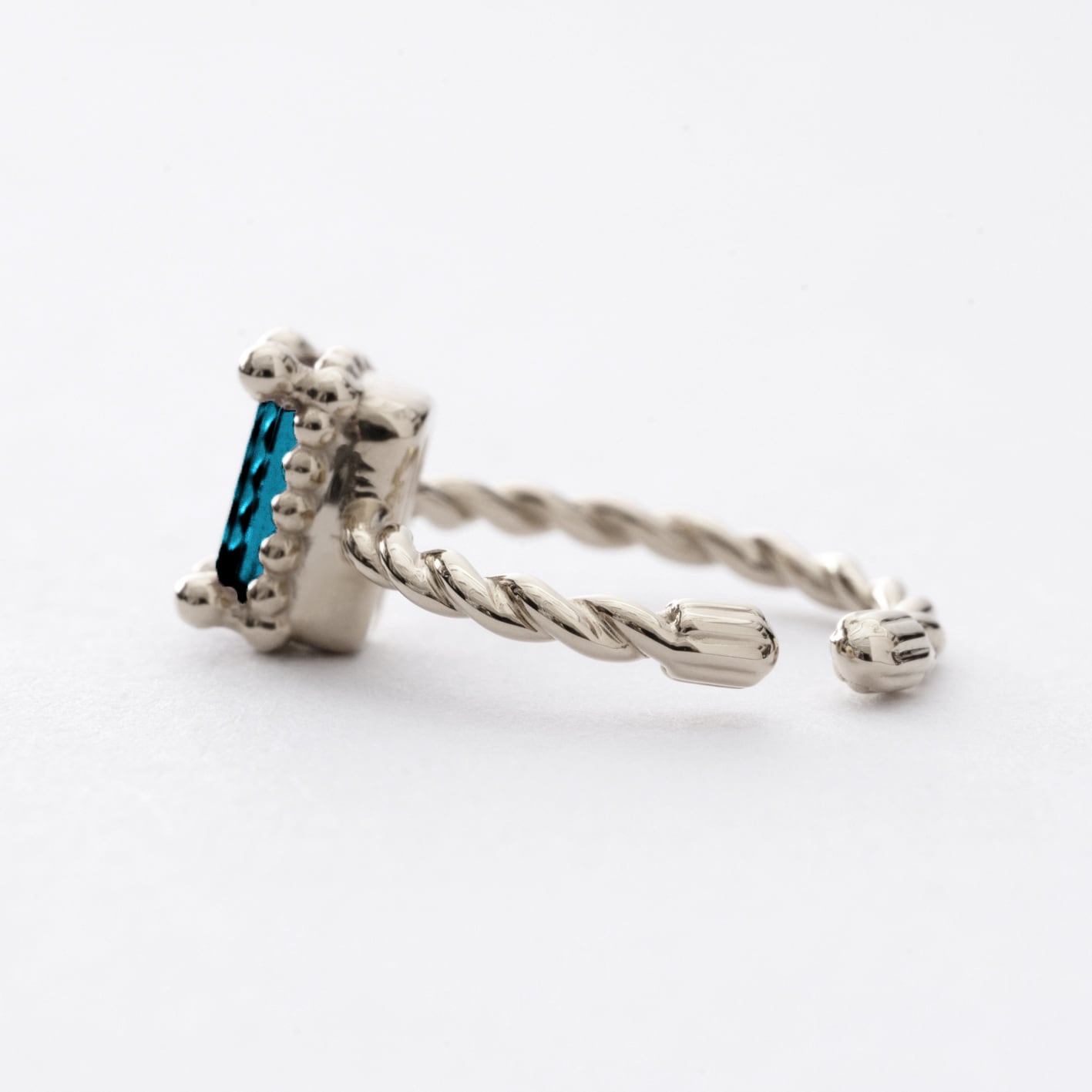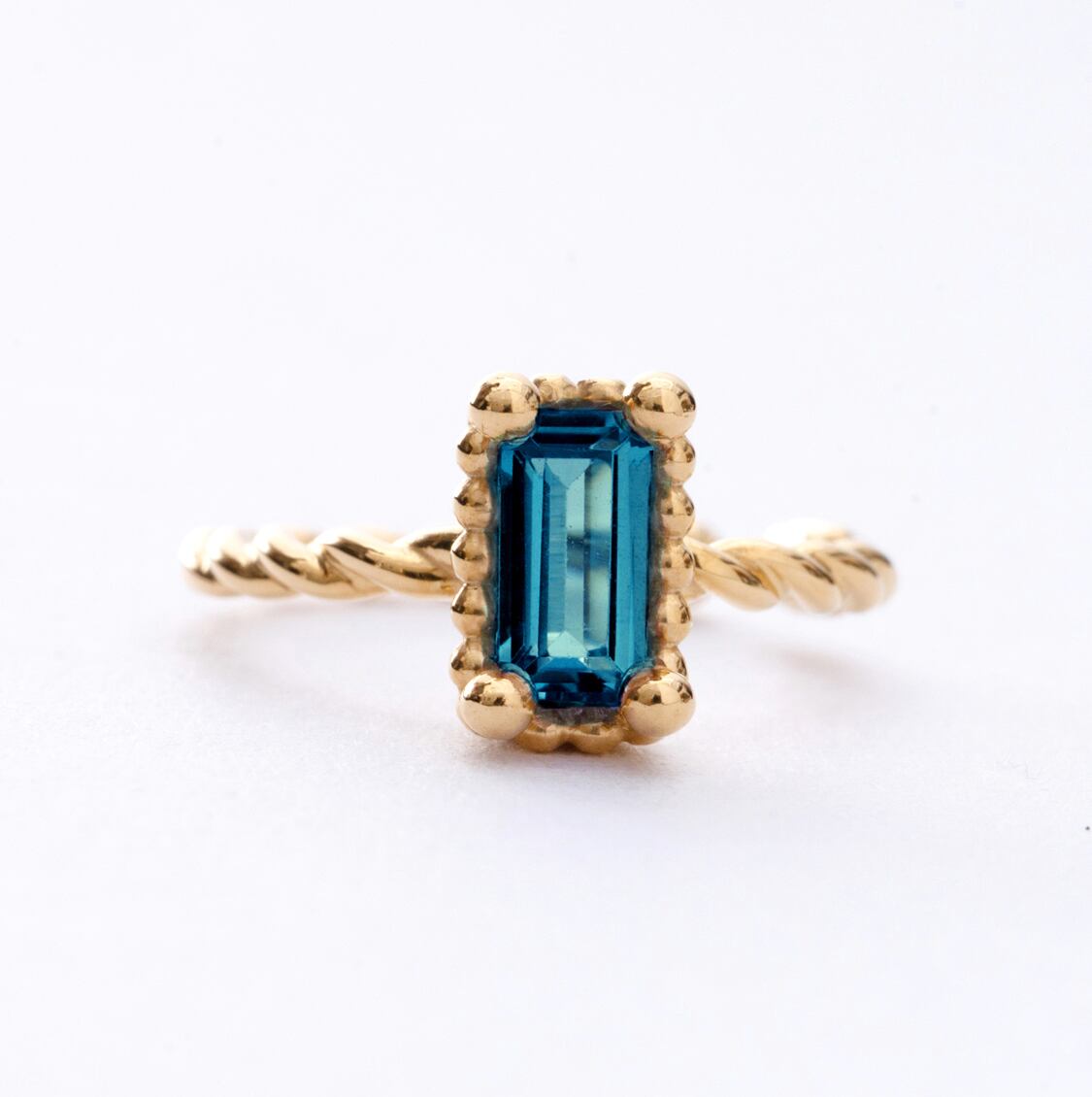 ロンドンブルートパーズ×レクタングル型はアンティークを思わせるような深みのある印象です。
