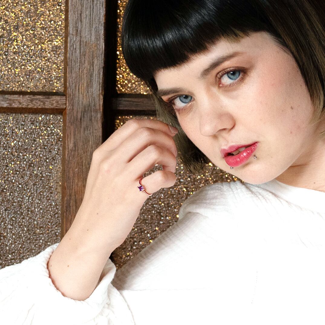 肌に馴染むピンクゴールドなら、スタイリッシュに紫カラーが際立ちます。