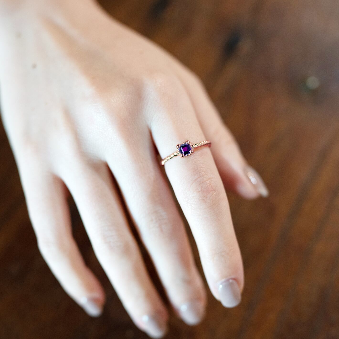 キラリと光る天然石のリングをデイリーに楽しみたいときや、お手持ちのリングと共に重ね付けをしたいときにぴったりのリングです。