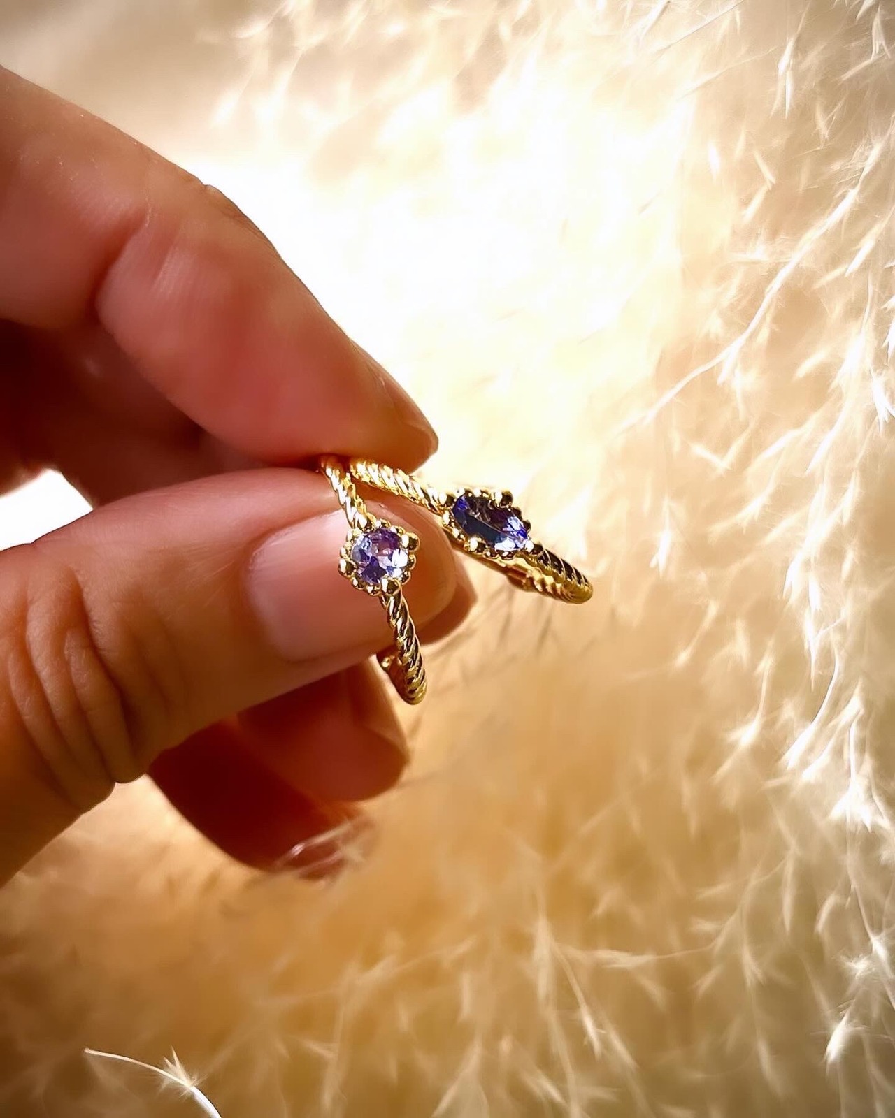 肌に馴染むピンクゴールドなら、タンザナイトが際立つ印象に。